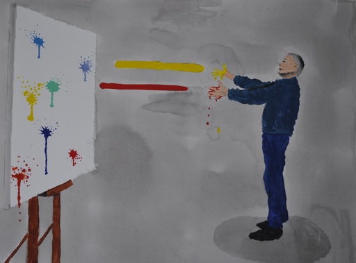 Inspired by Anne Kamphuis Henk started painting in 2006. His first work was abstract, using different styles and techniques. Soon, Henk also started to paint landscapes. In 2009, on a trip to the end of the world, he got acquainted with the work of Sergio Boccaccio. This inspired him to start painting sports scenes (Boccaccio paints sailing yachts, go figure that one out!). Paintings are given away rather than sold. Henk (1931) is not convinced that paint should be applied with a brush.